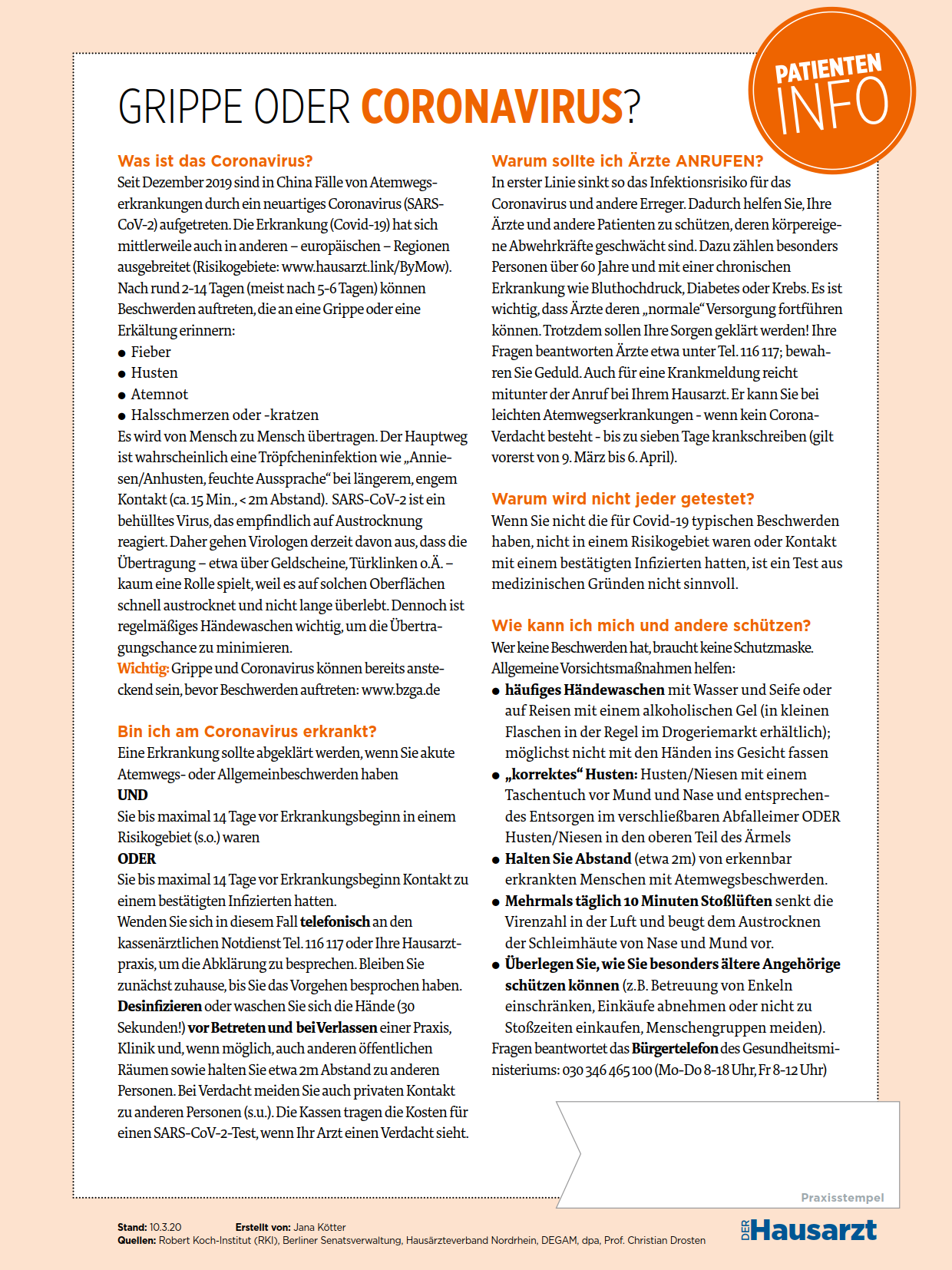 An dieser Stelle finden sie regelmäßig aktualisierte Informationen über die aktuelle Lage rund um das neuartige Corona-Virus als PDF-Dateien zum Download.